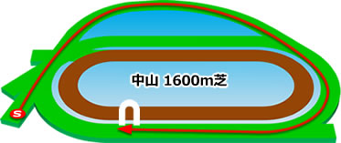 中山芝1,600mは1コーナーポケットからスタートし、初角まで239.8mと短いため、スタート直後からスピードが求められるコースです。
