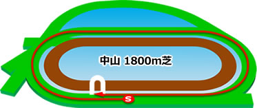 中山芝1,800mはスタンド前からスタートし、最初のコーナーまでが短いため位置取りが重要になります。